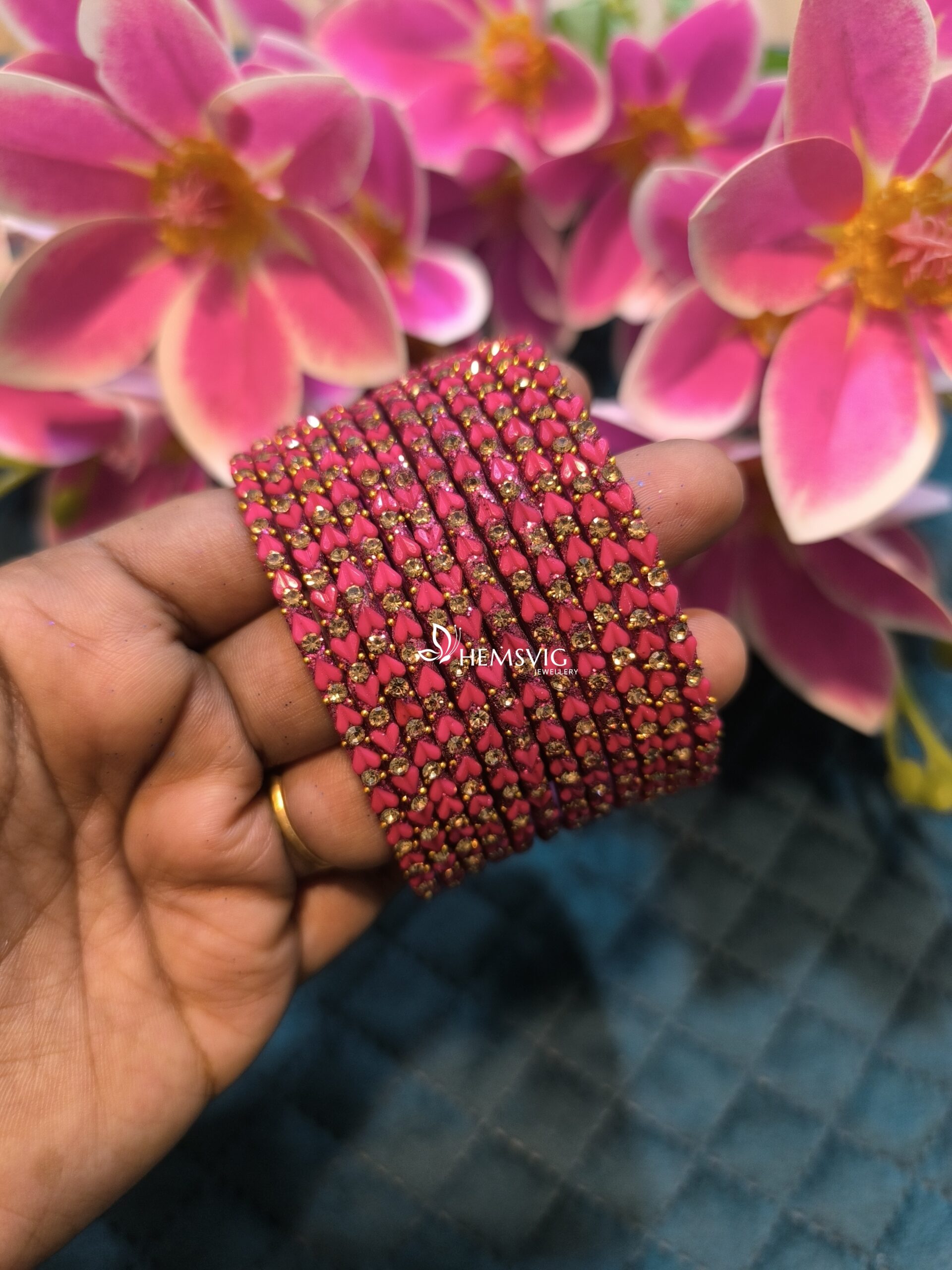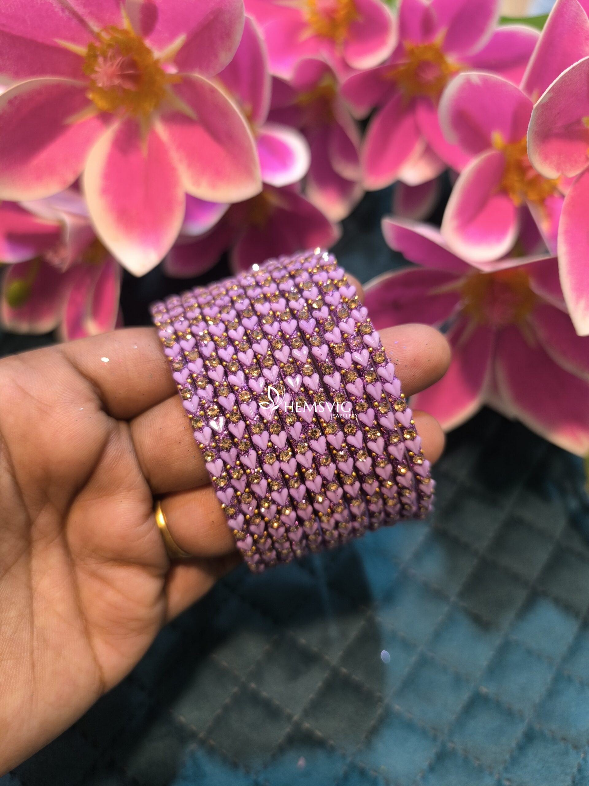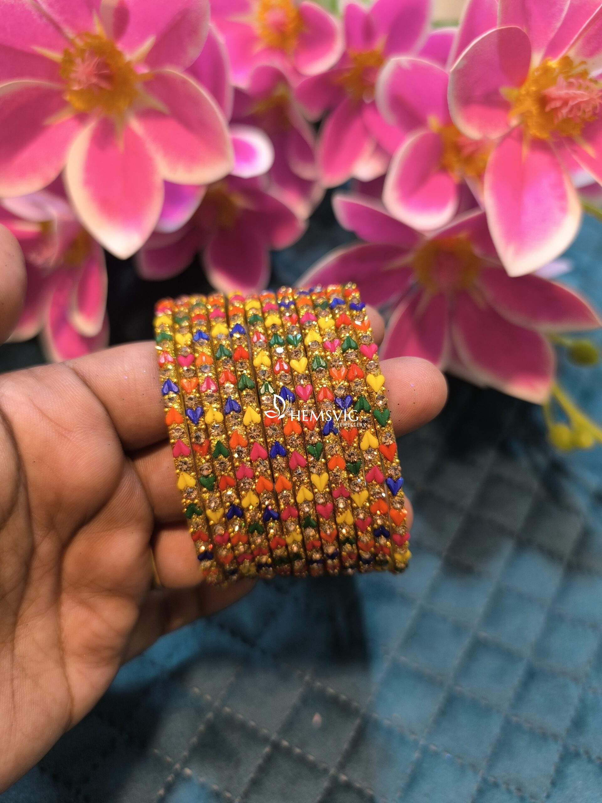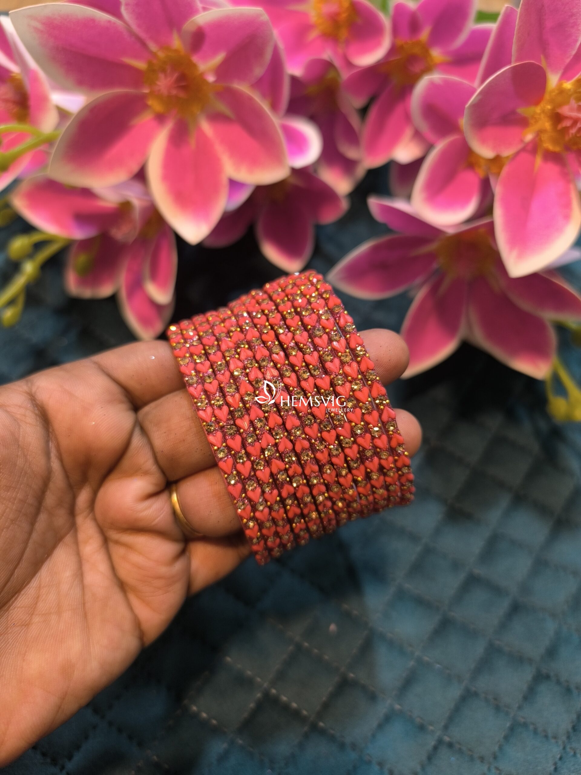 Set of 6 heart-shaped glass bangles, crafted for elegance and comfort. A stylish choice for daily wear or special occasions.