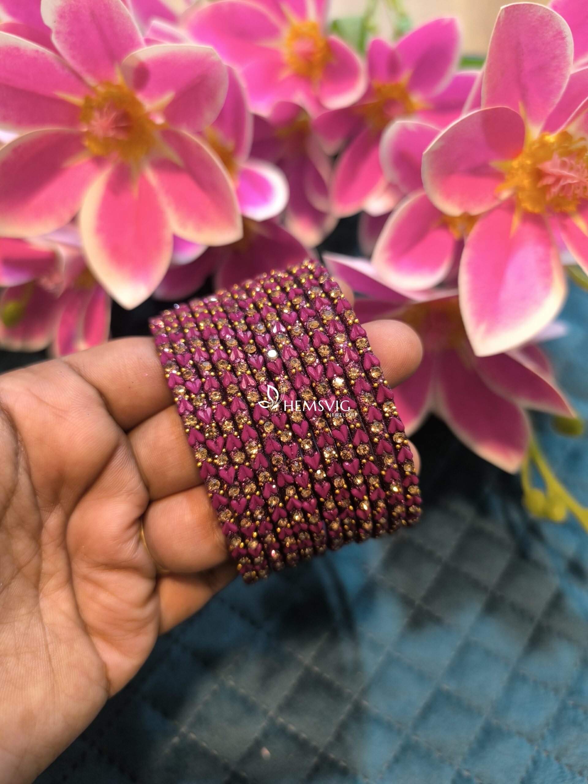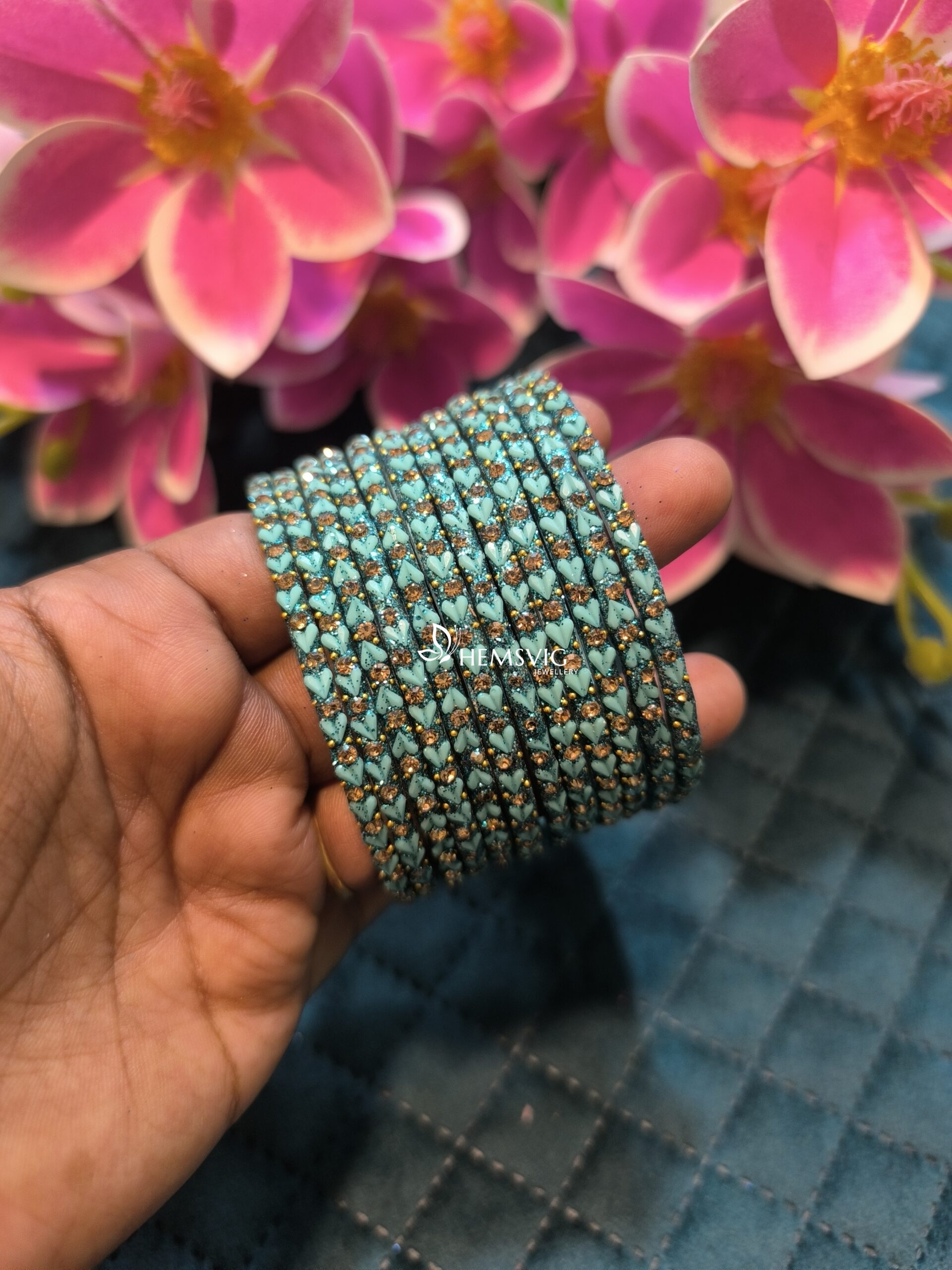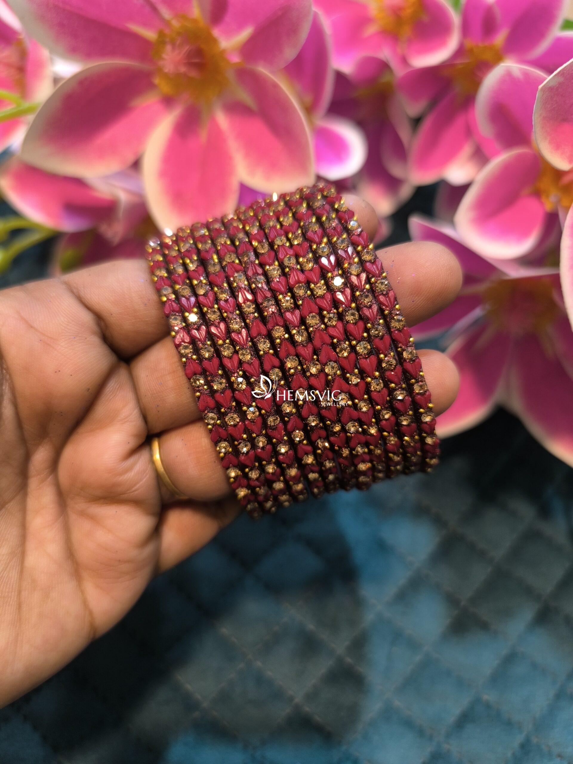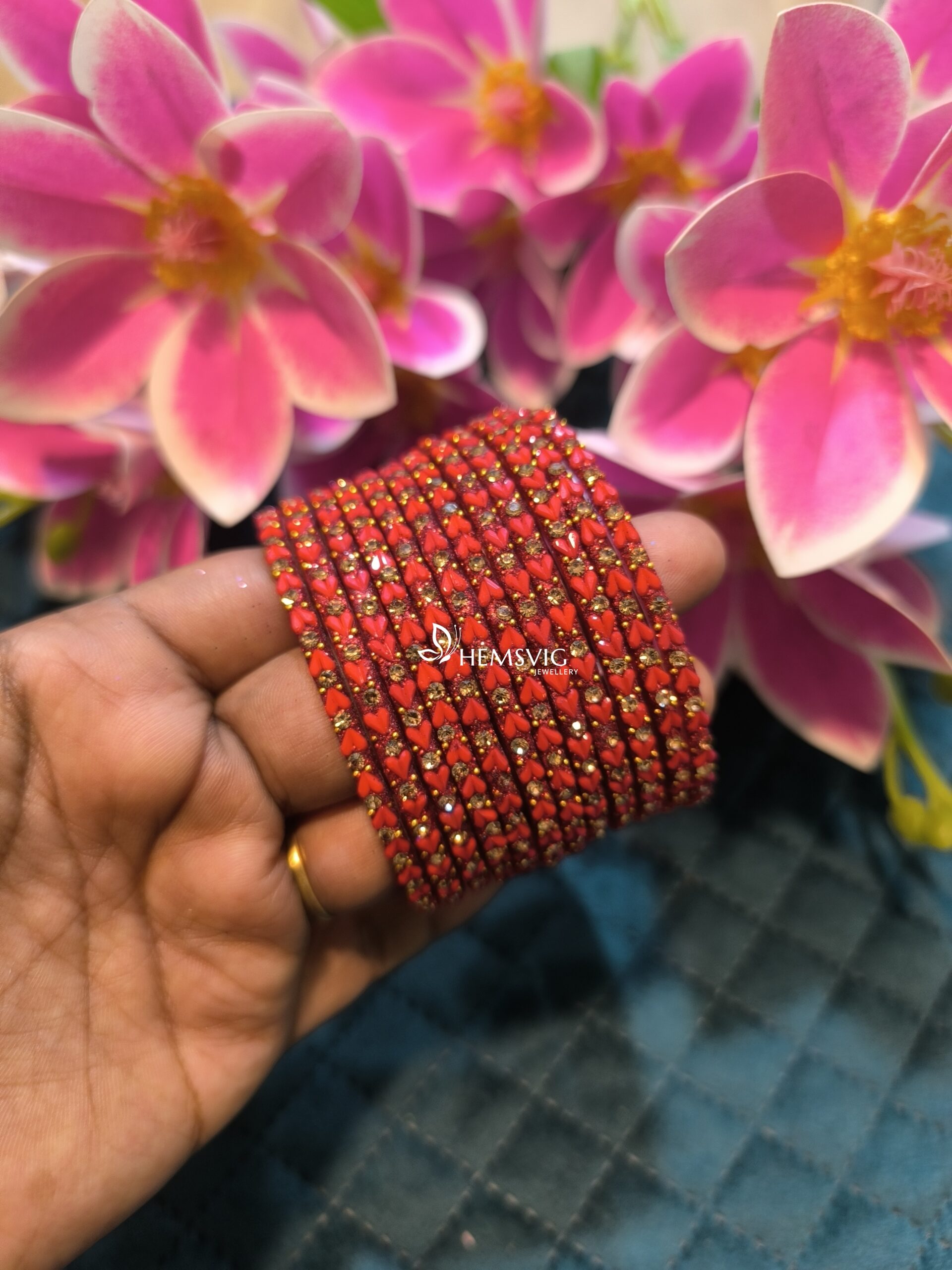 Set of 6 heart-shaped glass bangles, crafted for elegance and comfort. A stylish choice for daily wear or special occasions.