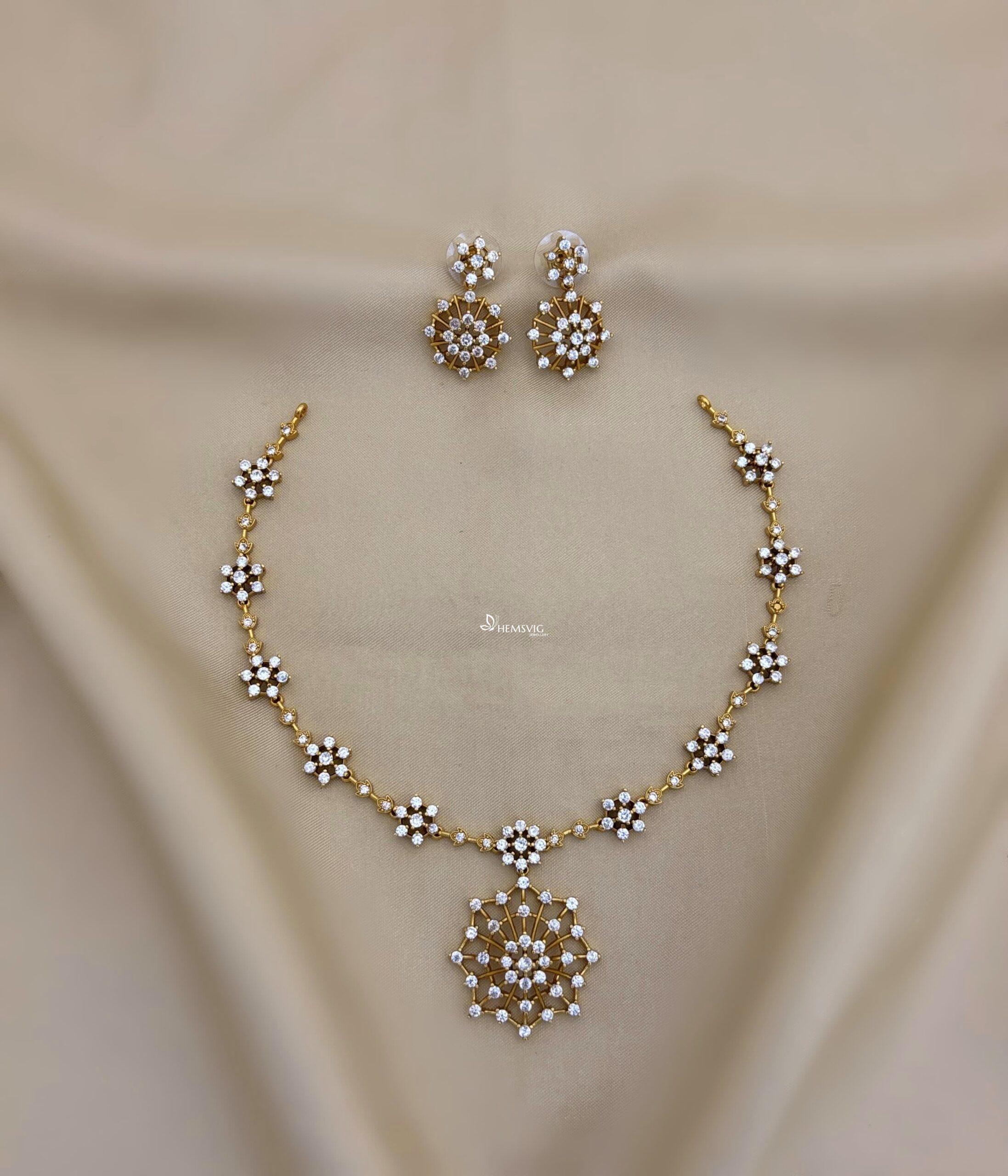 Radiant Floral Diamond Look-Alike Necklace Set with Stud Earrings
