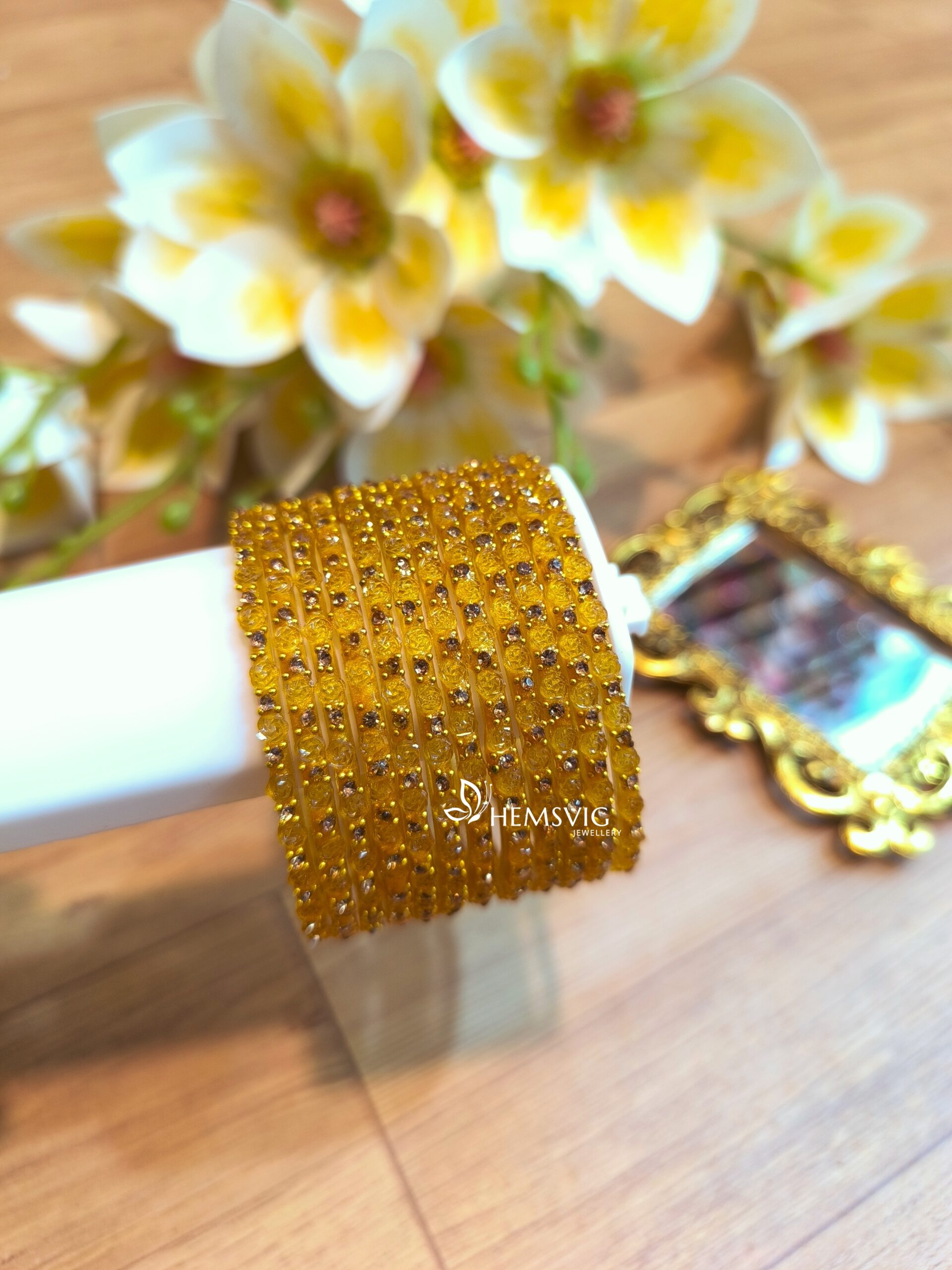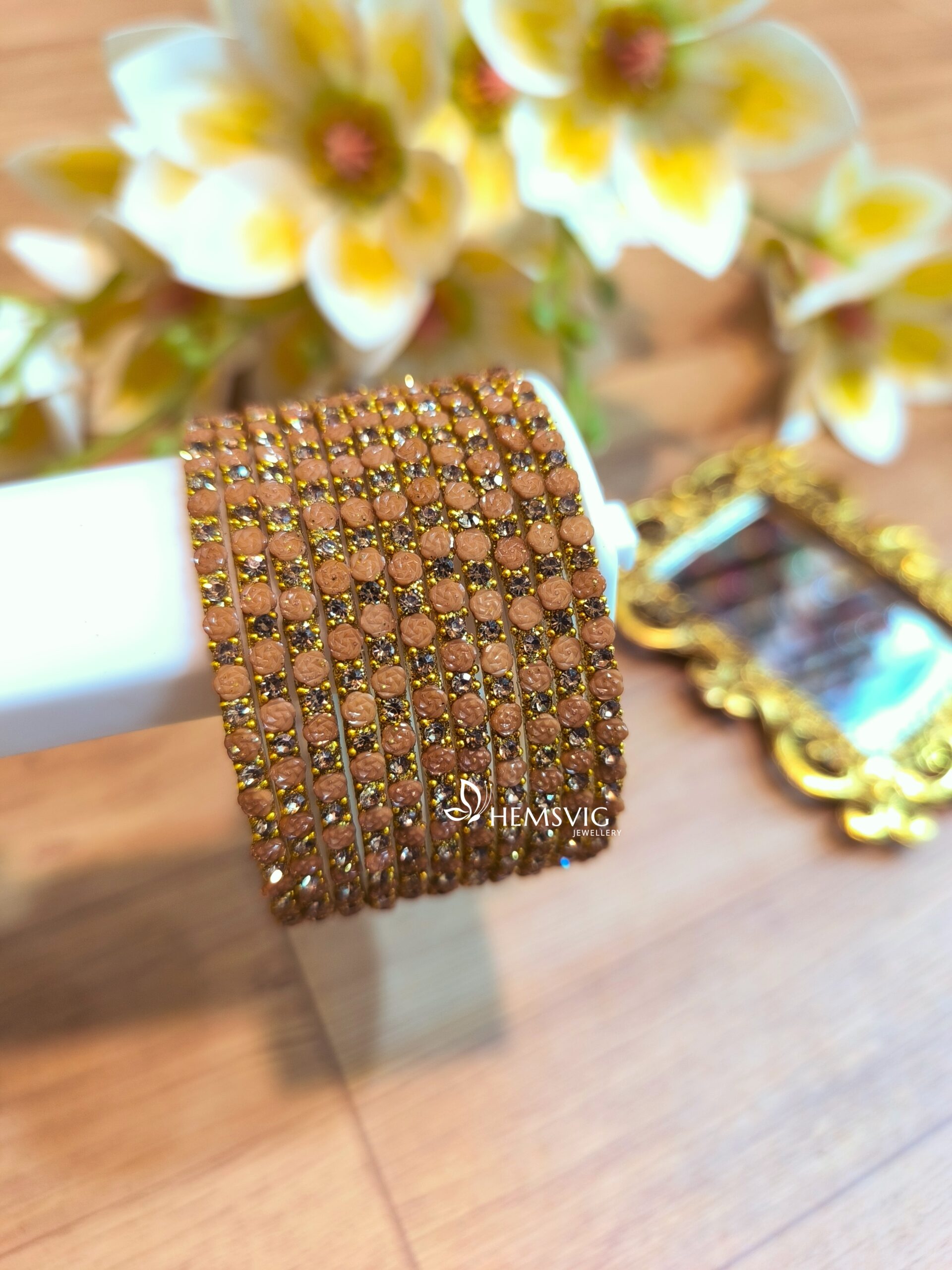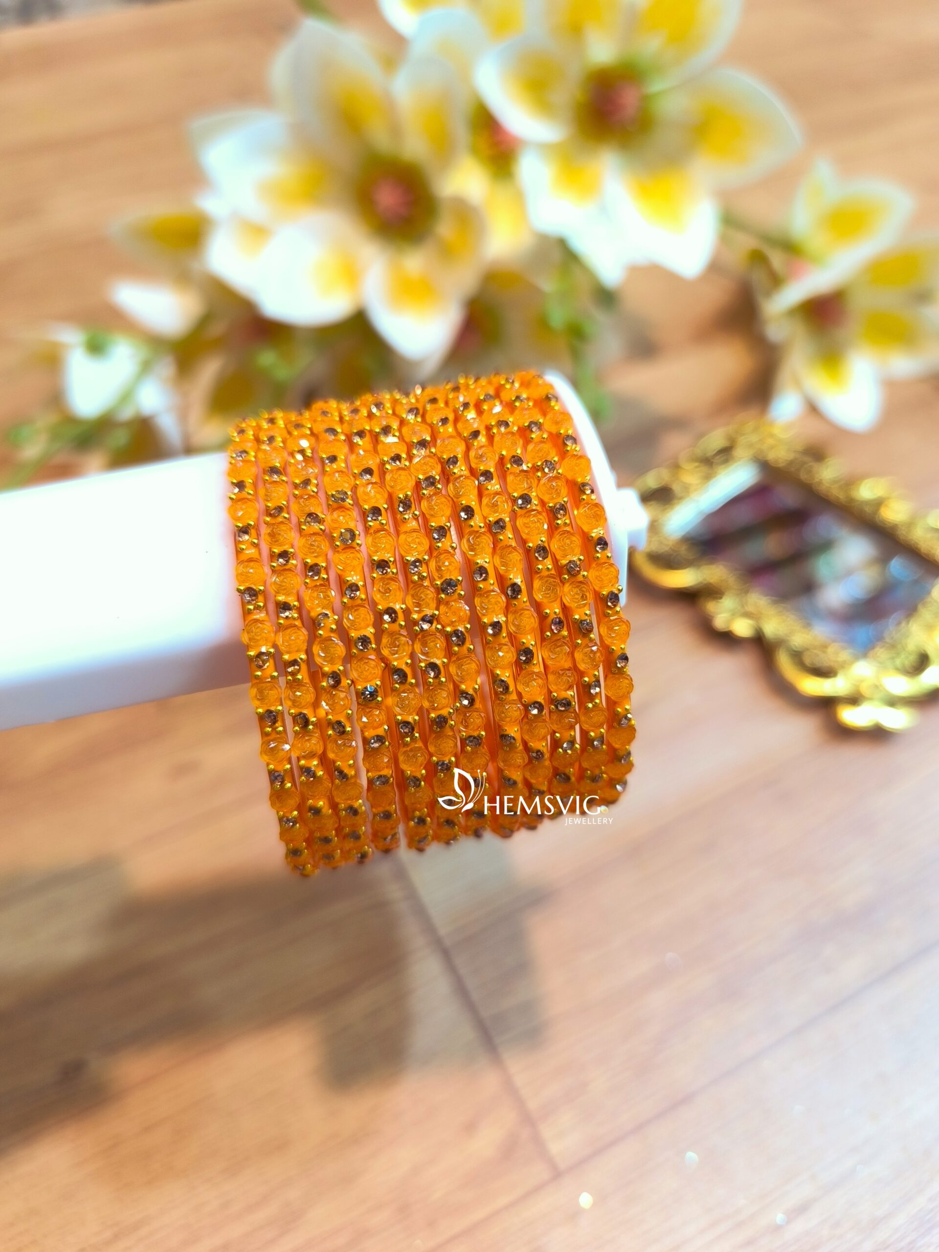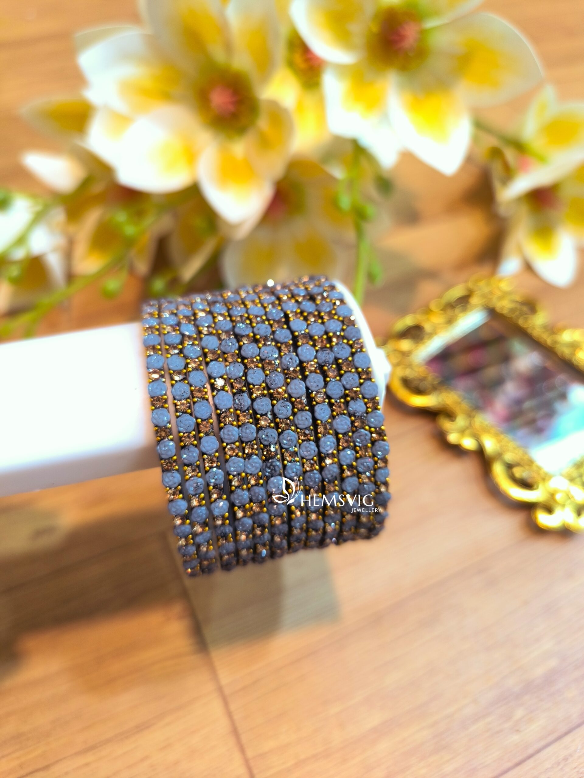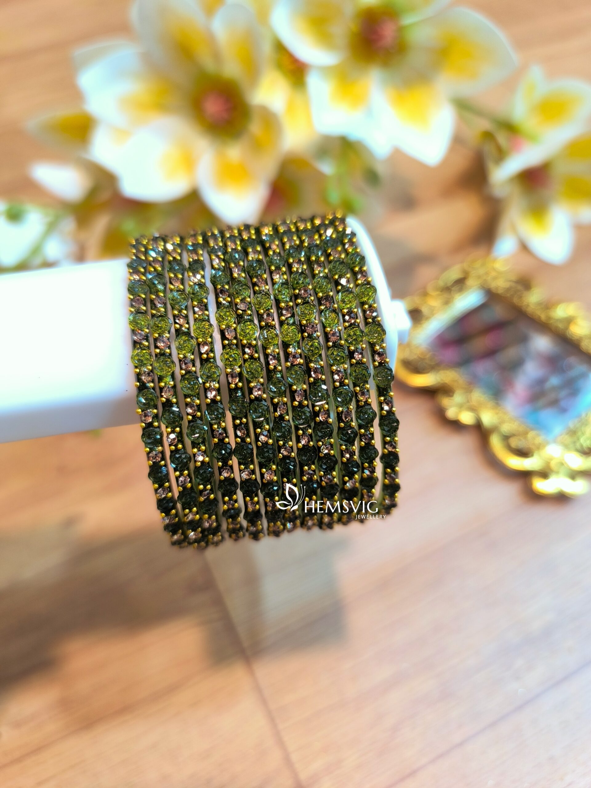 Enhance your traditional style with these stunning crystal-cut glass bangles featuring an elegant rose-inspired design. Expertly crafted with shimmering stones and fine beads, this set brings a luxurious sparkle to your wrist. Ideal for weddings, parties, and ethnic wear — these bangles offer durability, comfort, and beauty that every woman will admire. A perfect gift choice for special occasions and a lovely addition to any jewelry collection.